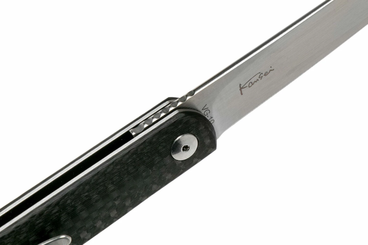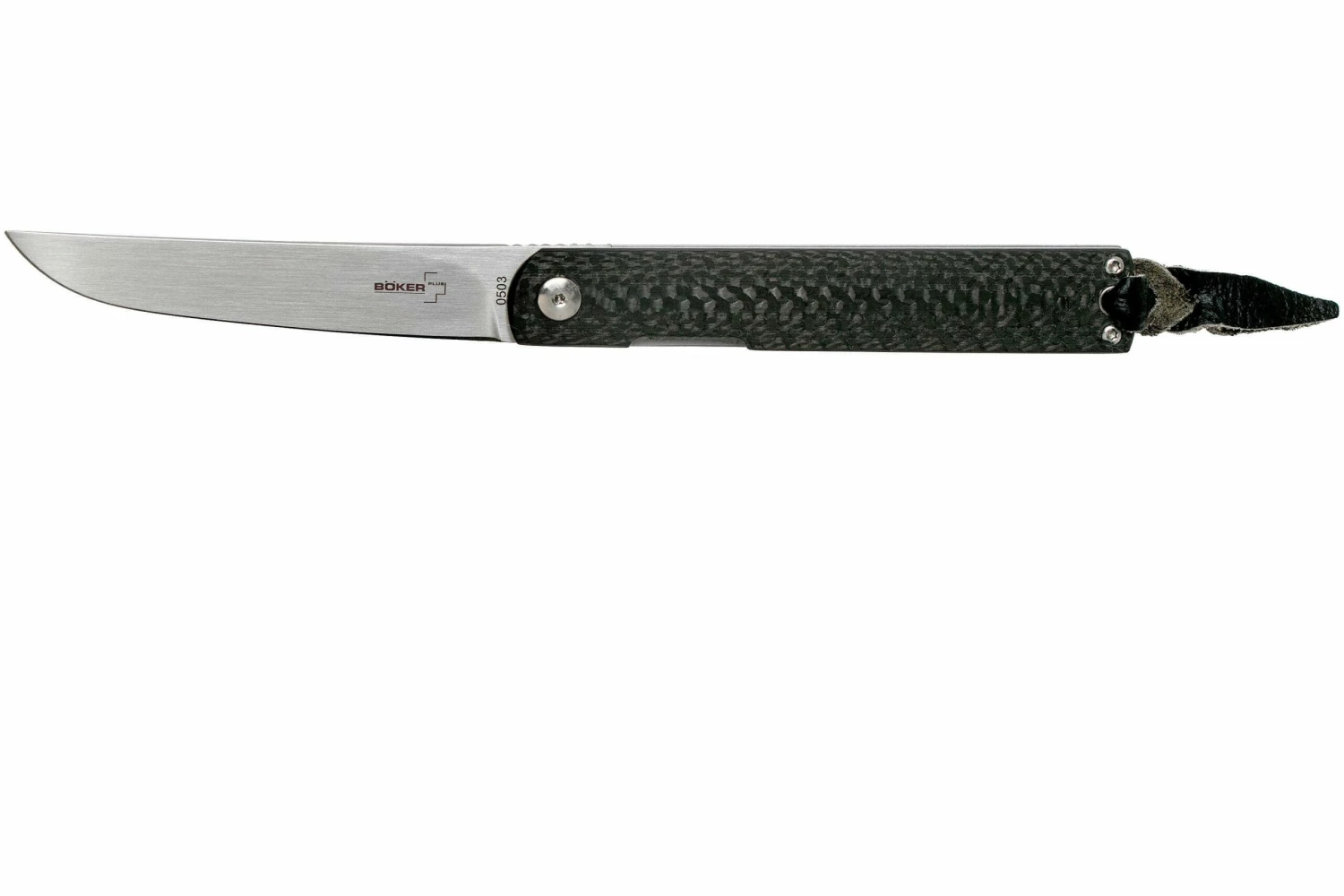 El Böker Plus Nori es un notable y elegante cuchillo de caballero. Fue diseñado por el diseñador japonés Kansei Matsuno. Sus diseños son increíblemente populares por su elegancia. Todos ellos son notables. El Nori no es una excepción. Gracias a su peso extremadamente bajo y a su perfil delgado, casi desaparece en el bolsillo. Un cuchillo de caballero realmente elegante, para cortar un trozo de filete o pelar una manzana.