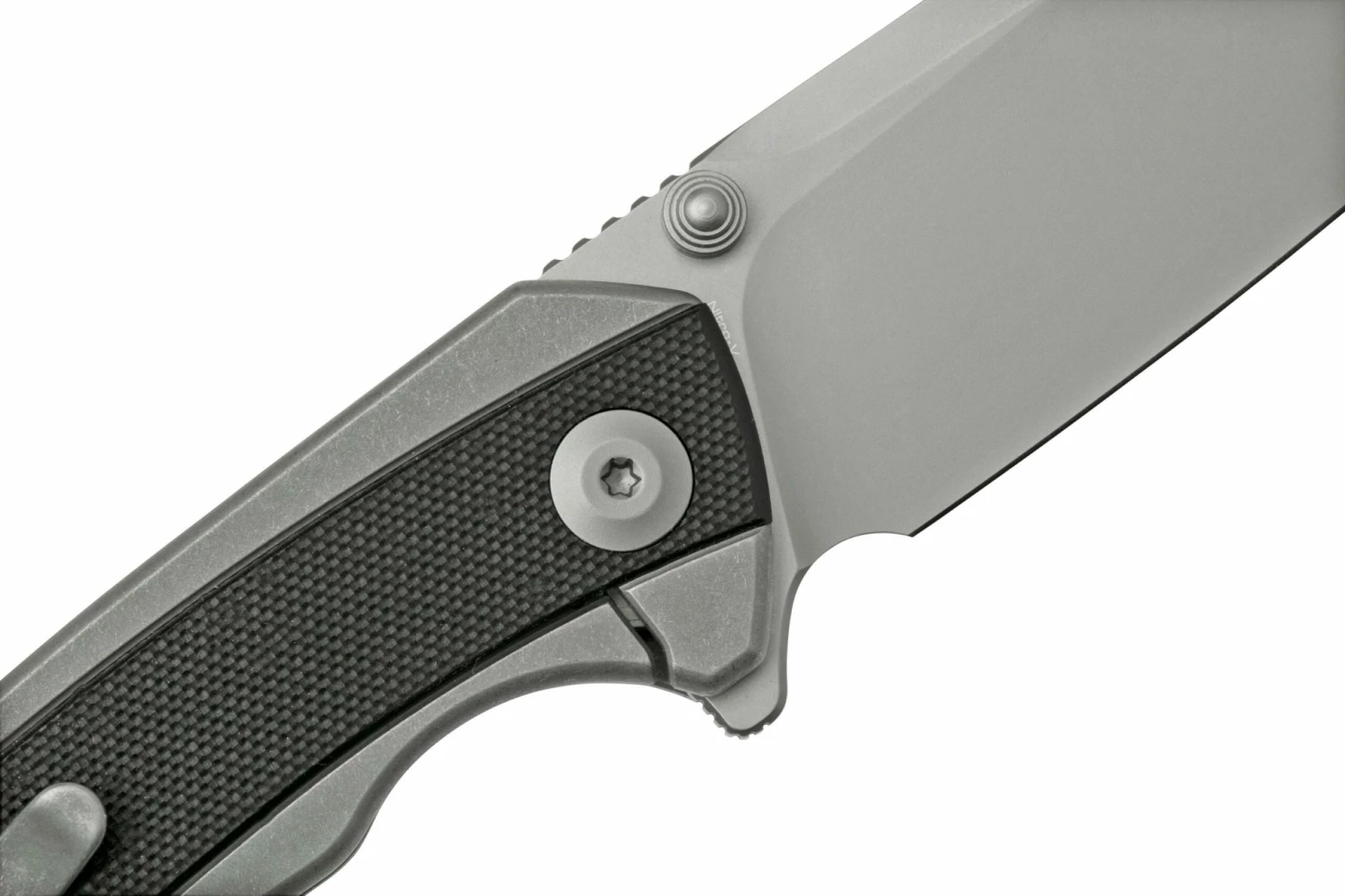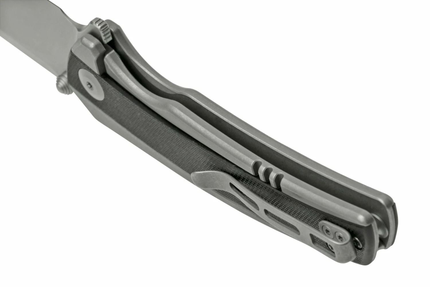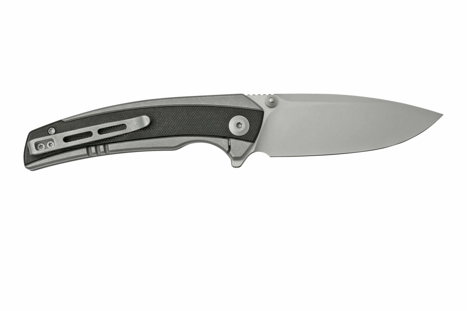 La Civivi Teraxe C20036-2 es una navaja grande, pero práctica. El mango es absolutamente único debido al uso de acero negro, combinado con G10 de color burdeos. Esto significa que el cuchillo es relativamente pesado. La hoja se abre con la ayuda de un botón para el pulgar o un flipper. Una vez abierta, la hoja se bloquea mediante un framelock.