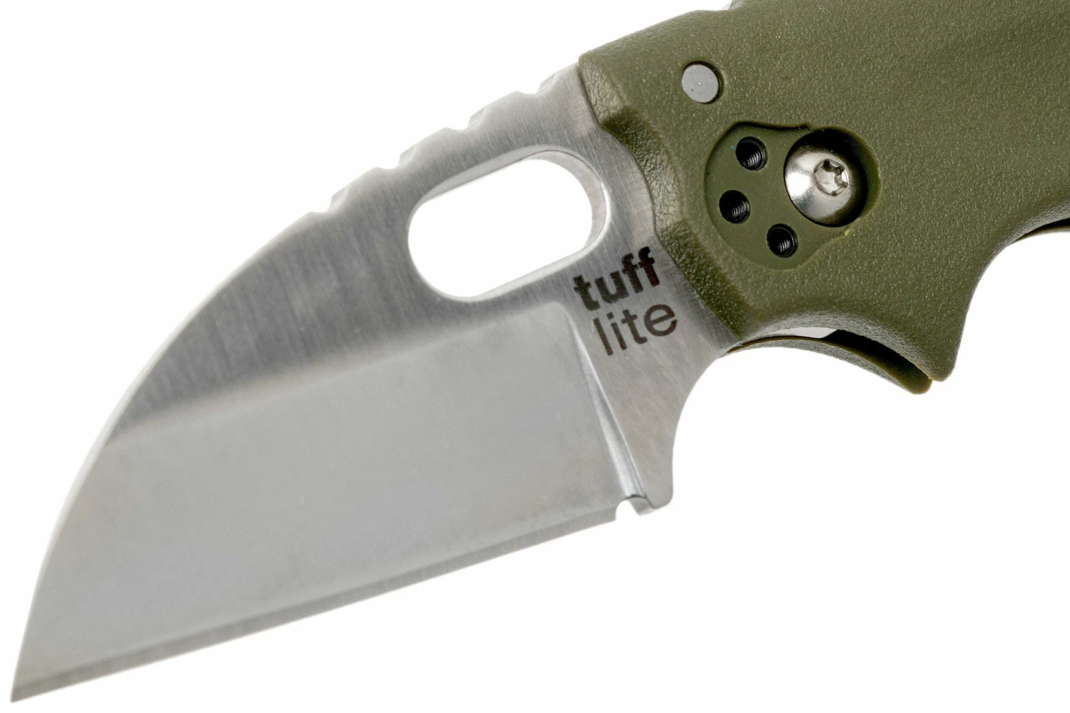 La Cold Steel Tuff Lite es una increíble navaja ara uso diario. Compacta y fabricada con materiales que han demostrado su eficacia en muchos otros cuchillos. El Grivory del mango puede manejar la humedad, el calor, el frío y una gran cantidad de productos químicos. La hoja de acero AUS8A tiene una forma derivada de una sheepsfoot o Wharncliffe. La superficie de corte recta es muy afilada. Debido a que la hoja se deja en blanco, no es tan táctico como muchos otros cuchillos de Cold Steel.