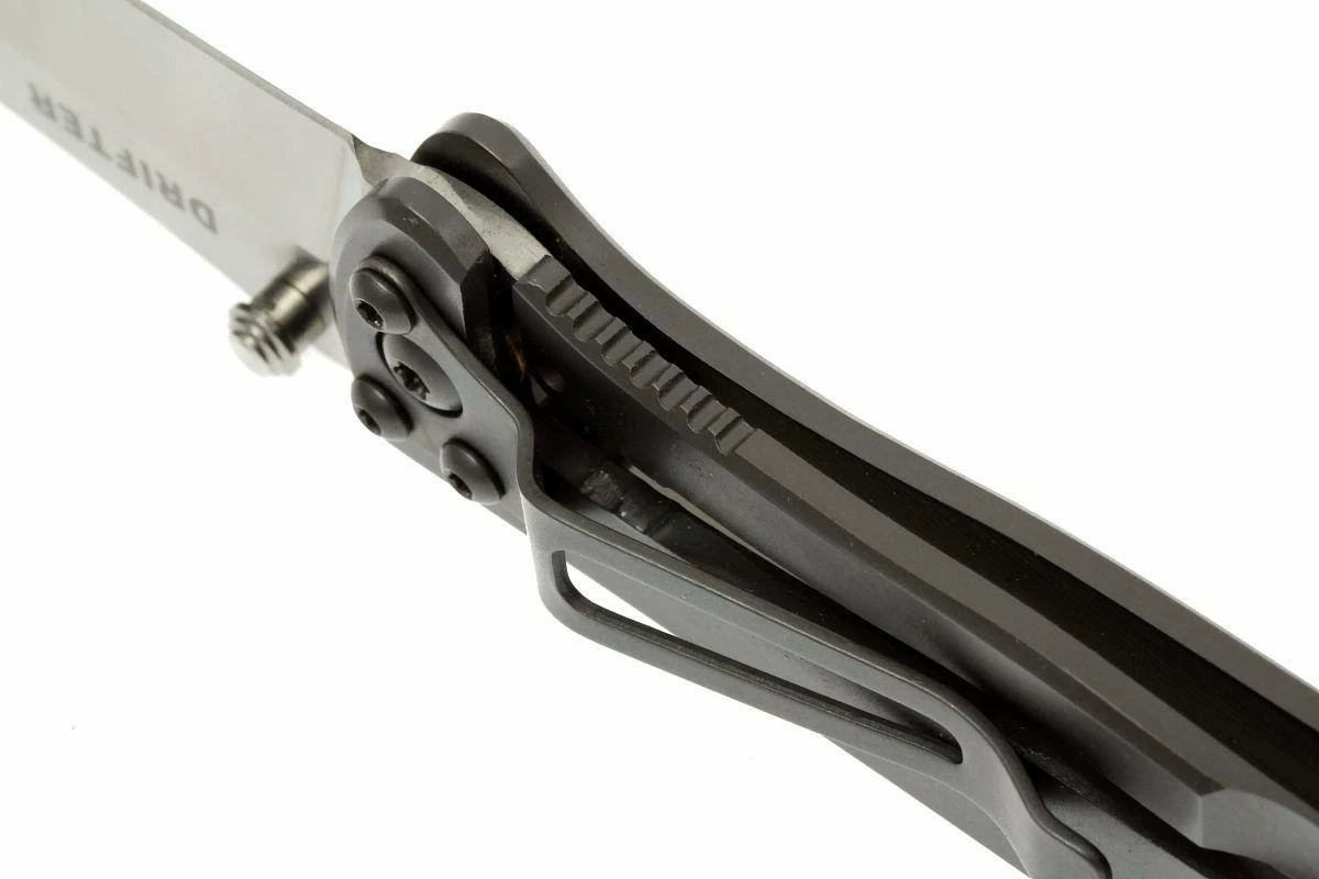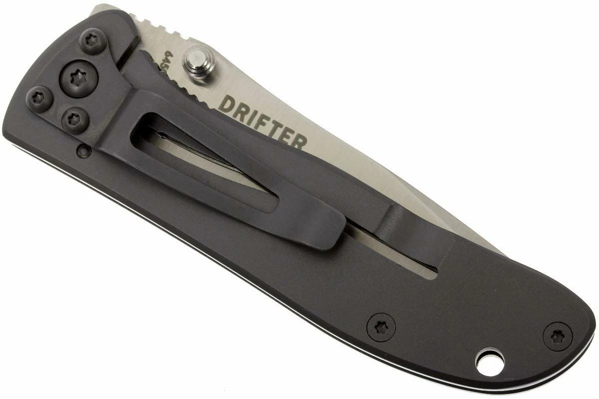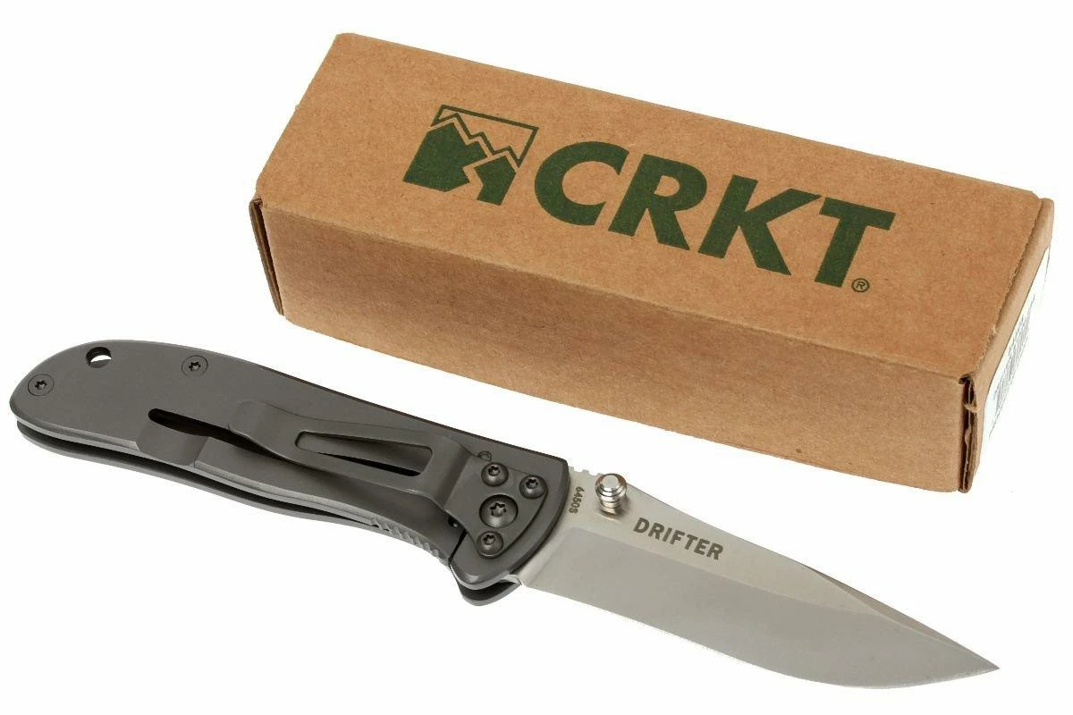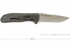 La CRKT Drifter es una navaja muy fuerte y sólida. Esto la hace muy adecuada para llevarla a diario (Every Day Carry – EDC). La navaja es ligera y bastante pequeña, lo que hace que quepa en el bolsillo con facilidad. La hoja tiene forma de punta caída (drop-point) y está hecha de acero inoxidable. El acabado mate da a la hoja un aspecto robusto.