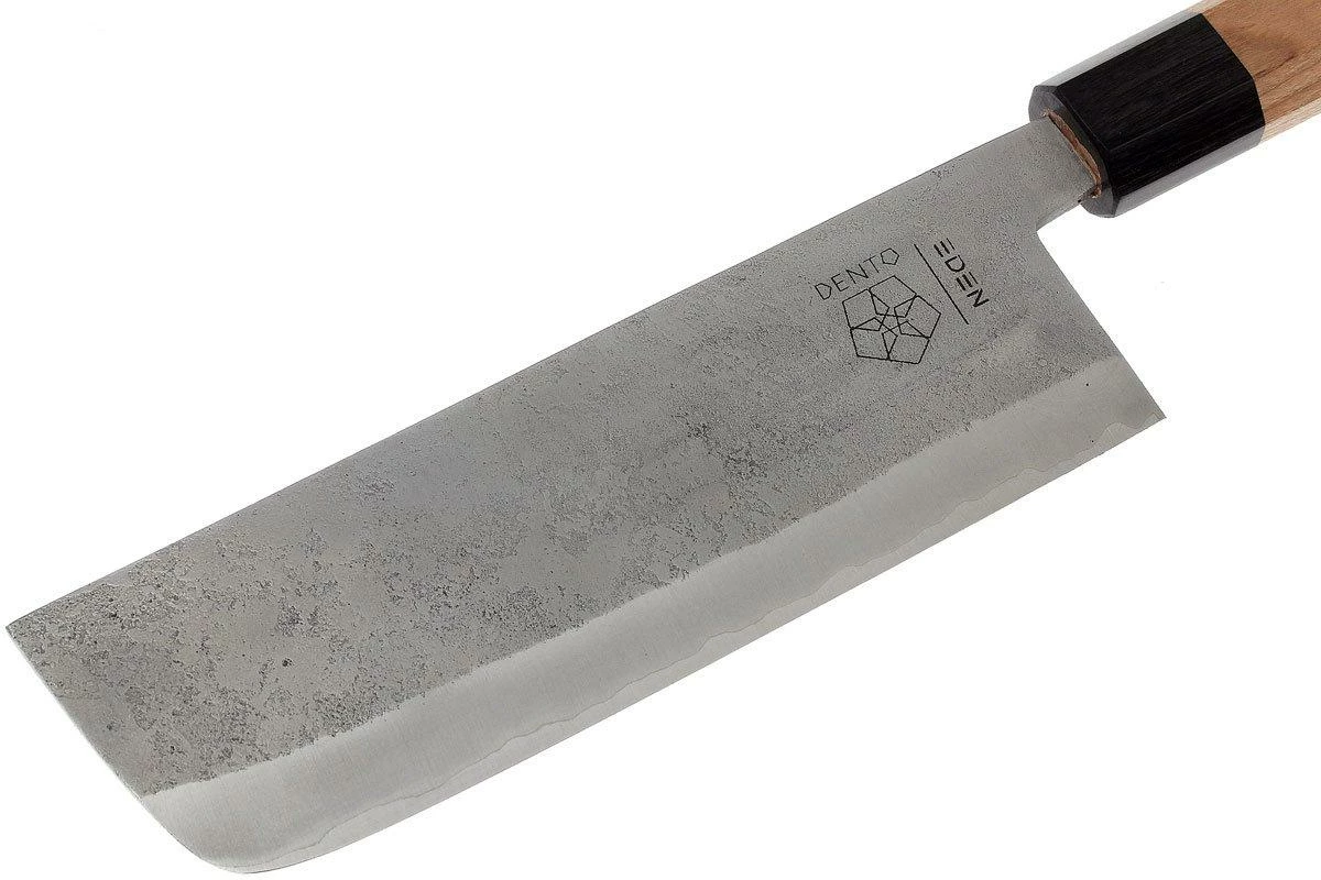 Eden Takara Nakiri es un cuchillo para verduras ideal de estilo japonés. En Japón el nakiri se utiliza para cortar con mucha precisión las verduras. El filo apenas llega hasta la punta. Sin embargo, la punta es algo redondeada para que el cuchillo se pueda deslizar sobre la tabla de cortar. Es un placer trabajar con él y es muy bonito a la vista.