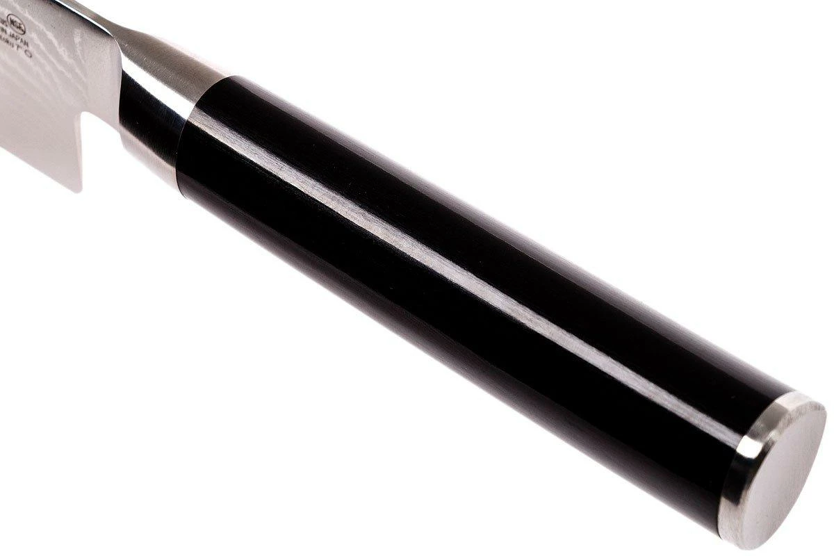 La colección Shun Classic está compuesta por preciosos cuchillos de cocina con acero de damasco de 32 capas. El núcleo VG-MAX se encarga de ofrecer unas propiedades de corte inigualables. Los mangos están hechos de madera de pakka laminada y tienen una forma asimétrica. Esta colección de cuchillos es una de las más extensas del mundo. Por su aspecto y por sus excelentes propiedades de corte, este cuchillo es un placer absoluto para la vista e increíble de usar. Cuchillo Santoku de la colección Shun.