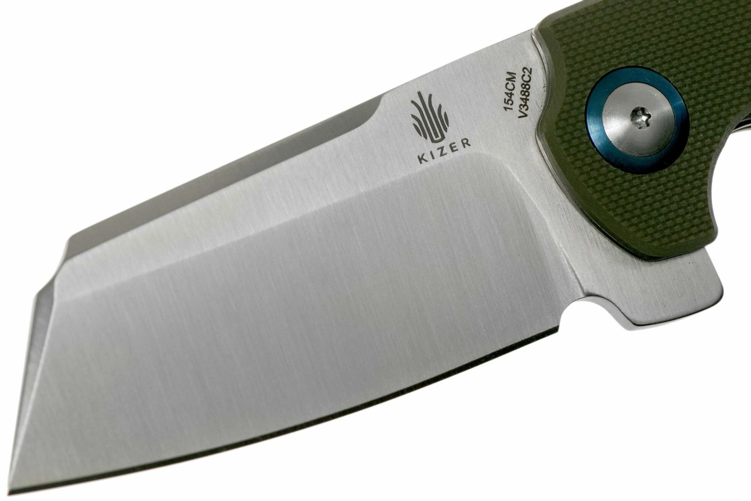 La Kizer Mini Sheepdog es una robusta navaja, diseñada por Chris Conaway de Sheepdog Knives. Se trata de la versión más pequeña del primer Kizer Sheepdog, que, abierto, mide 19,6 cm. Las proporciones de la hoja y el mango son sorprendentes. La hoja parece enorme en comparación con el mango «normal». Esto hace que la hoja sheepsfoot pueda parecerse un poco a una hacha de carnicero. Una hacha de carnicero de bolsillo.
