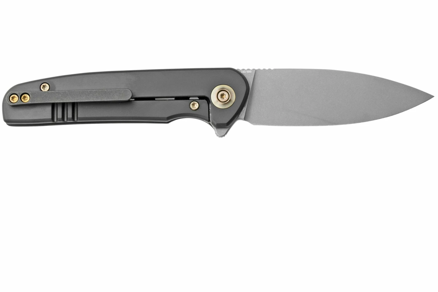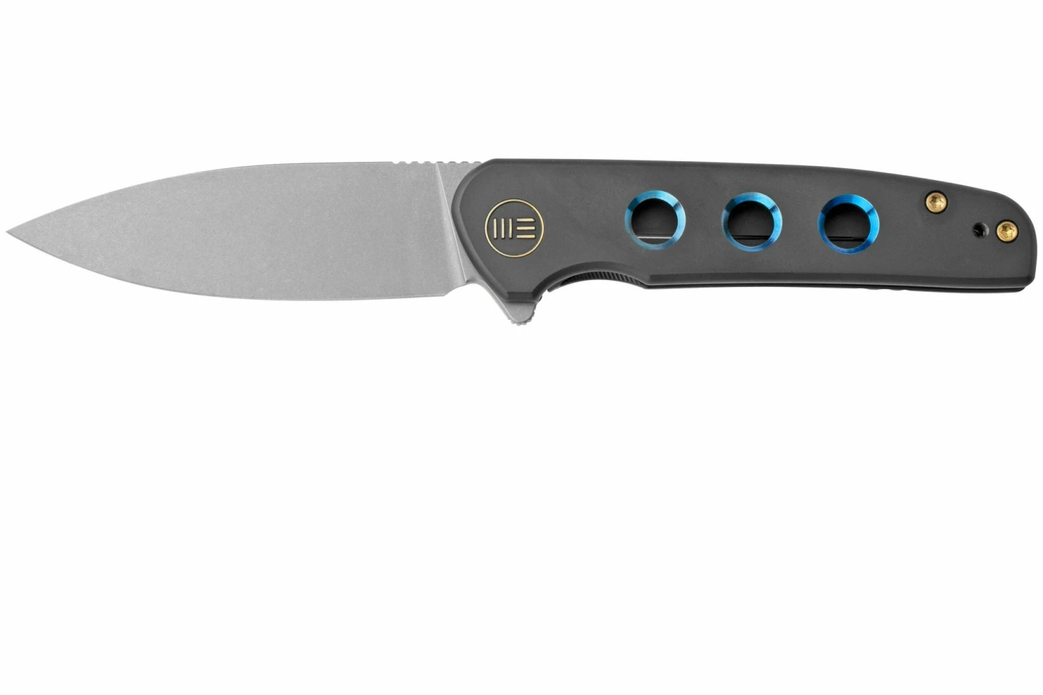 La WE Knife Shakan Limited Edition Black Titanium es una práctica y especial navaja de edición limitada. Es un cuchillo que querrás lucir en una vitrina, pero también llevar contigo todos los días. Esta edición tiene un mango de titanio negro con agujeros azules. El flipper y los cojinetes de bolas de cerámica garantizan una rápida apertura del cuchillo. Una vez abierto, un sólido cierre frame lock mantiene la hoja firmemente en su sitio.